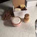 Please select which color of ramekin you like: pink, purple, green, brown, white, or gray. A bamboo dish brush is included. These fly off the shelf! Favorite and check back if you don’t see the color you want.